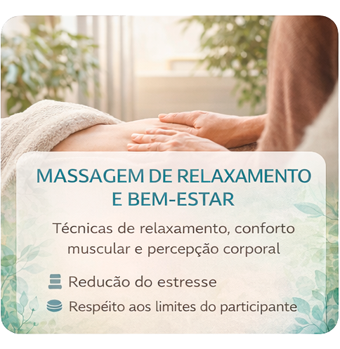 Técnica corporal voltada ao alívio de tensões, dores musculares e estresse, utilizando práticas orientais e manobras terapêuticas. Favorece o relaxamento, a circulação energética e a reconexão com o próprio corpo.